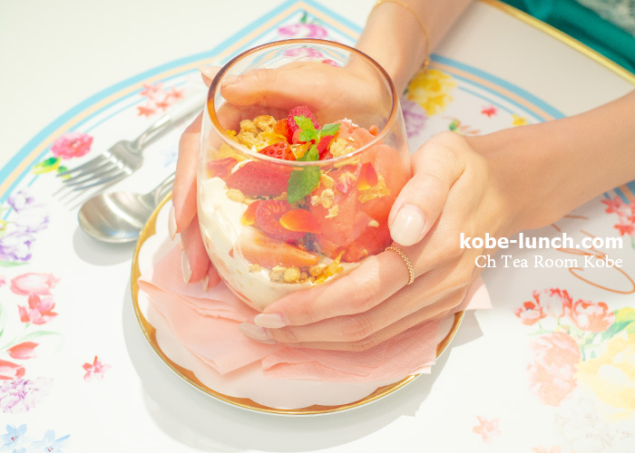 こちらのアフタヌーンティーは6月1日~8月31日までの期間限定でCh Tea Room Kobeと大阪北新地アートフルーツファクトリー「北新地mint(ミント)」がコラボしたメニュー。