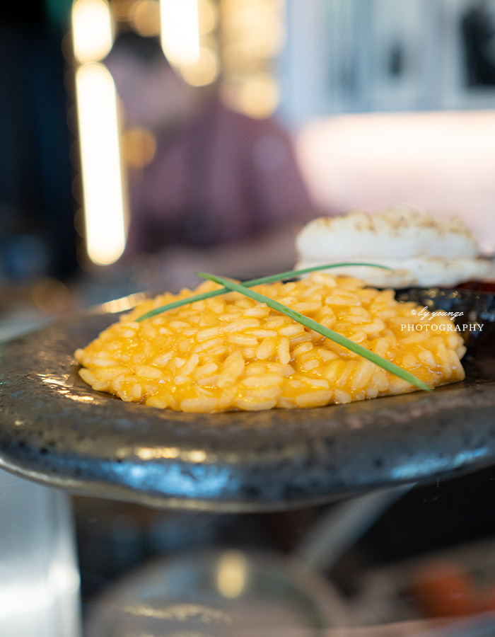 ・ローカルマッシュルームのリゾット、グリルドロブスターテール添え