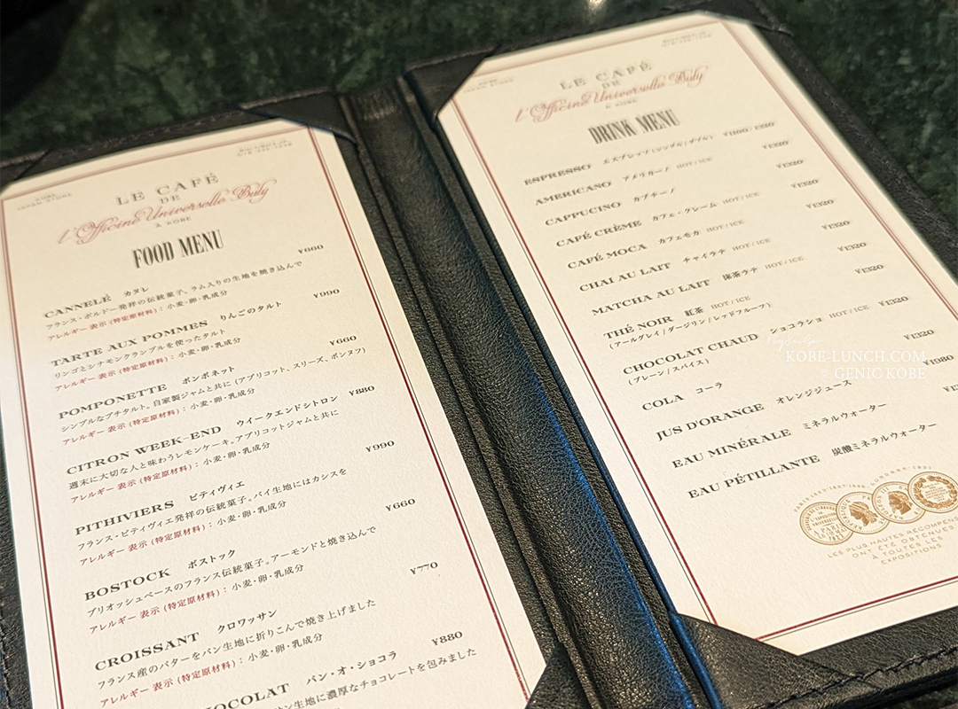 OFFICINE UNIVERSELLE BULY 神戸カフェ メニュー
