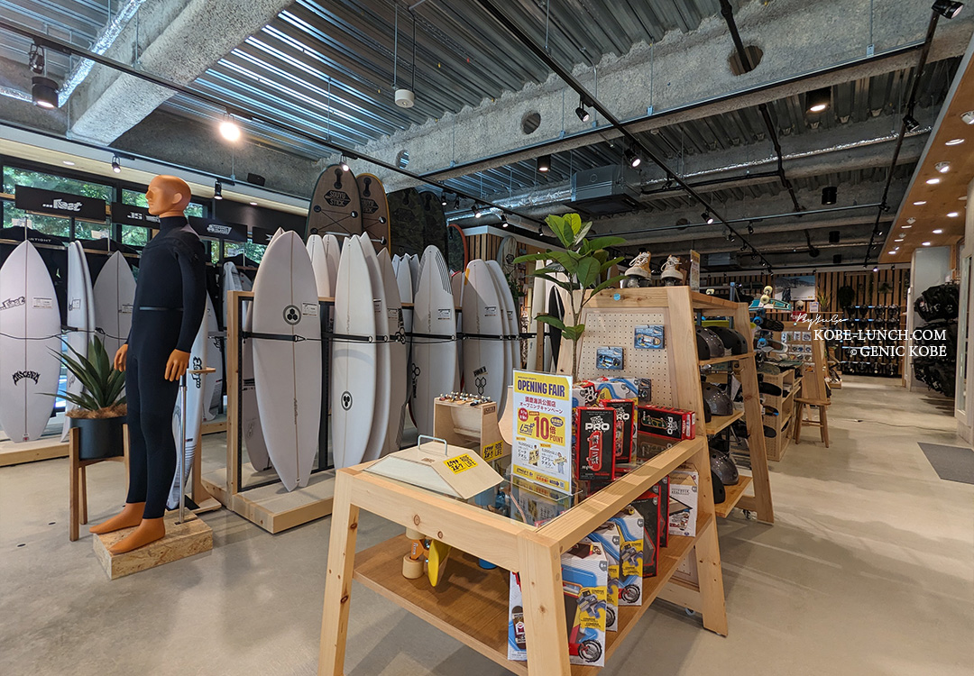 今回ご紹介するお店の中では唯一の非飲食店ですが、須磨海岸にピッタリのマリンスポーツアイテムがたくさんありました!
